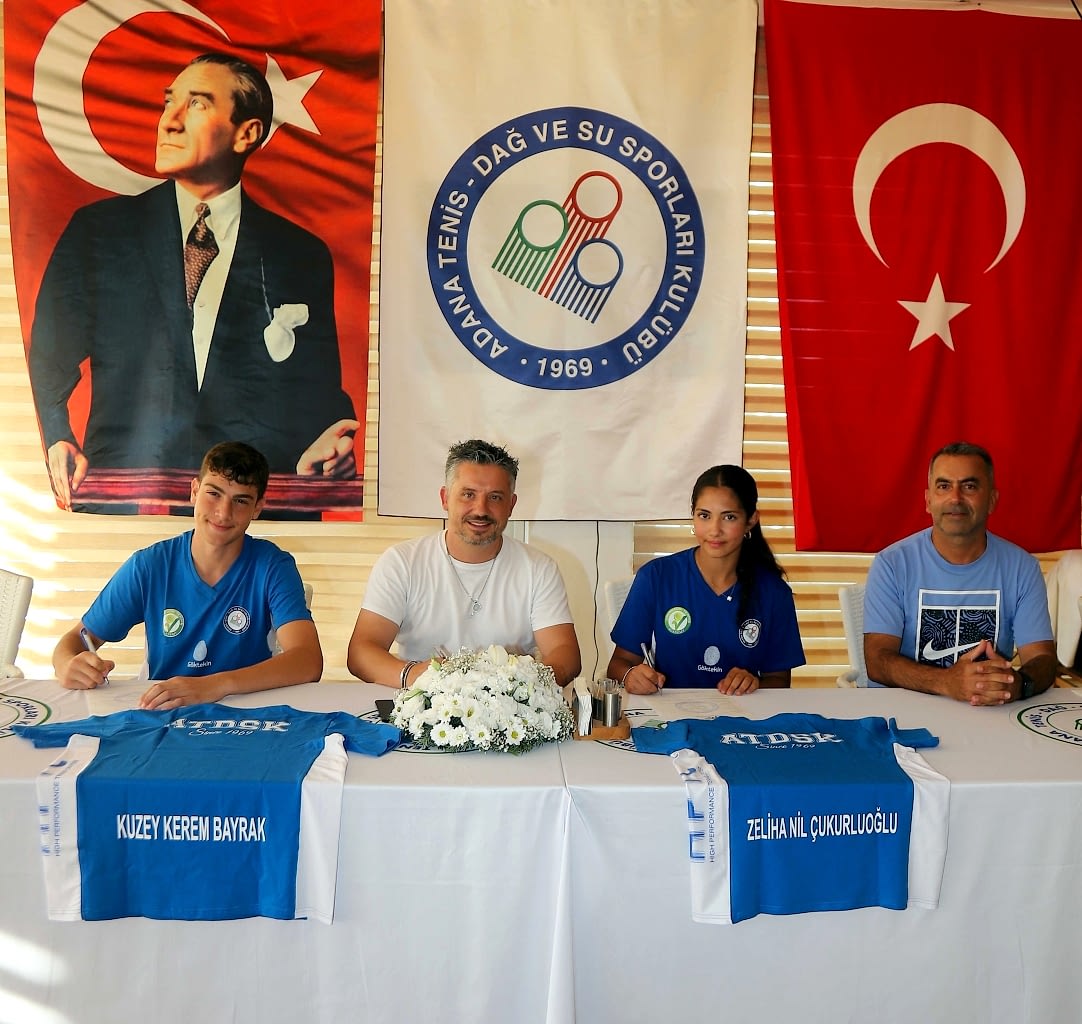 Adana Tenis Dağ ve Su Sporları Kulübü (ATDSK), tenis şampiyonlarının Türkiye’deki adresi olmaya devam ediyor. Davis Cup’ta ülkemizi temsil eden A Milli Takımın 1 Numarası olan milli tenisçi Ergi Kırkın ve 2 numaralı milli tenisçi Yankı Erel’i Adana’ya kazandıran ATDSK, bu kez 12 ve 14 yaşta 5 kez milli takıma giren Ankara’dan 14 yaşındaki Zeliha Nil Çukurluoğlu ile 3 Tennis Europe şampiyonluğu bulunan, Türk tenisinin başarılı raketlerinden biri olan Samsun’dan Kuzey Kerem Bayrak’ı Adana’ya transfer etti. Sporcuların ailelerinin de katıldığı törende konuşan ATDSK Başkanı Ali Refah Keskin, “Bu imzalar Türk tenisi için atılmış imzalardır. Aslında biz hepimiz Gençlik ve Spor Bakanlığımız ve Türkiye Tenis Federasyonu’muz önderliğinde bayrağımıza hizmet ediyoruz. Nil ve Kerem gibi tenisçilerimizin değerini bilmek, onları korumak, kollamak ve iyi oyuncuların sayısını artırmak için biz ATDSK olarak kendimize bir yol haritası çizmiş durumdayız. Türk tenisine ilkleri kazandıran Çağla Büyükakçay, İpek Soylu gibi başarılı tenisçilerimiz olsun, sayısız isimleri, her döneme mal olmuş, olimpiyatlara oyuncu vermiş, altyapıdan yetiştirmiş Türkiye’deki güzide kulüplerden biriyiz. 1969 yılında kurulurken hazırlanan tüzüğümüzün 1’inci maddesindeki amaca uygun şekilde değerli sporcuları yetiştirmeye devam edeceğiz” dedi. Kuruluşunun 50’nci yılı olan 2019’da, Uluslararası Tenis Federasyonu’nun (ITF) 5 eksperinden biri olan İtalya’daki Vavassori Tenis Akademisi’nin kurucusu Renato Vavassori’nin baş antrenörlüğünde Türkiye’nin ilk uluslararası tenis akademisini Adana’da kuran ATDSK’nın son 10 yılda 50 milyon liranın üzerinde yatırım yaptığını kaydeden Keskin, “Ay yıldızlı bayrağımıza hizmet için aralıksız çalışıyoruz. Sporcularımız İtalyan modeli programla geleceğin şampiyon raketleri olmak için çalışıyorlar.  Farklı ülkelerden sporcular Adana’ya gelerek kulübümüzde kamp yaparken, sporcularımız da İtalya’ya giderek, orada antrenman imkanı buluyorlar. Bütün bunlara rağmen biz kendimizi yeterli bulmuyoruz. Akademik olarak, antrenör olarak, personel olarak, yönetim olarak, kulübümüzün her bir üyesiyle birlikte gelişmeye, tenise katkı koymaya devam ediyoruz” diye konuştu. Kendilerine fırsat veren ATDSK Başkanı Ali Refah Keskin ve yönetim kuruluna teşekkür eden Zeliha Nil Çukurluoğlu ve Kuzey Kerem Bayrak da, “Çok heyecanlı ve çok mutluyuz. İnşallah biz de bize verilen bu fırsatı iyi değerlendirerek, dünya sıralamasında ilk 250’ye kadar yükselmek ve Grand Slam oynamak istiyoruz” dediler.